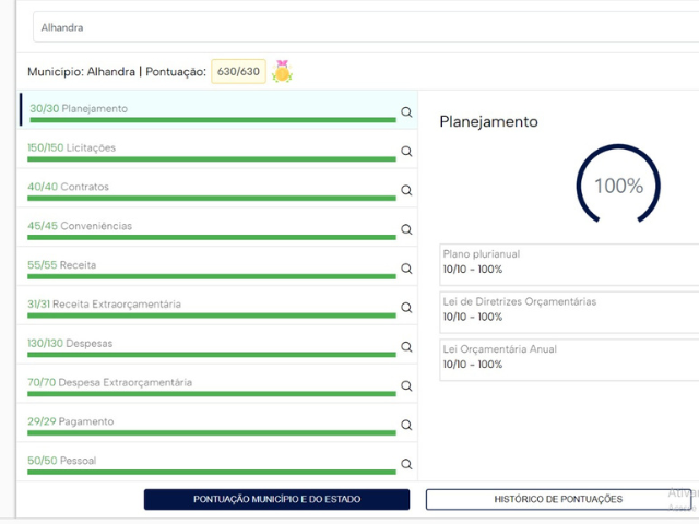 A Prefeitura de Alhandra celebra uma importante conquista. O município alcançou a pontuação máxima no ranking de transparência pública Turmalina, do Tribunal de Contas do Estado da Paraíba (TCE-PB). Com 630 pontos de um total de 630, Alhandra obteve uma avaliação de 100% em conformidade com as exigências de transparência e acesso à informação, consolidando-se como uma referência em boa governança e compromisso com a sociedade.
