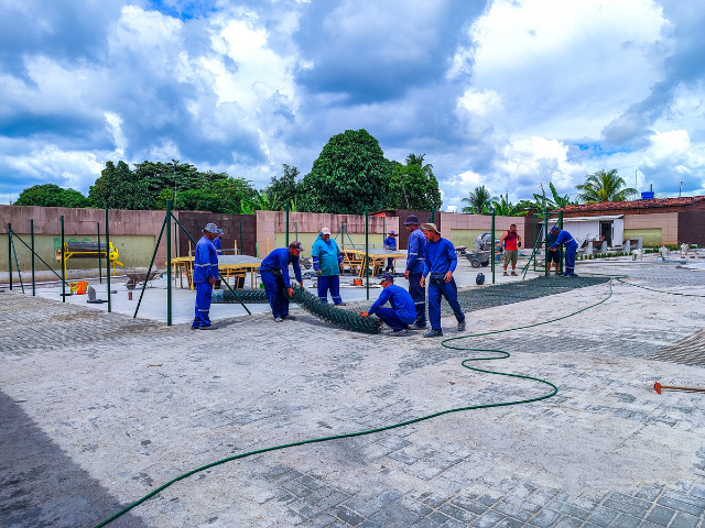 Praça São Sebastião, no bairro do Oiteiro, em Alhandra recebe novos avanços e está 85% concluída