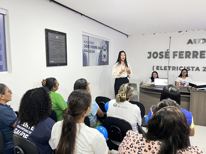 A capacitação, realizada no anexo da Câmara Municipal, reuniu profissionais da atenção básica para discutir práticas mais sensíveis, técnicas e eficazes no acompanhamento de crianças com Transtorno do Espectro Autista (TEA), fortalecendo a rede de cuidado no município.