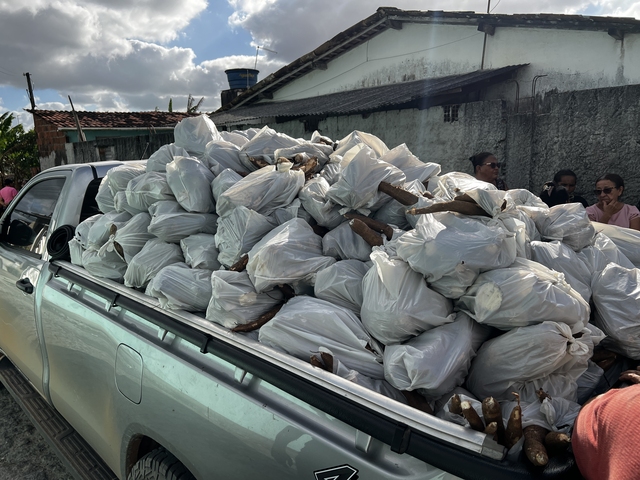 macaxeira e 2.400 kg de inhame São Tomé, adquiridos diretamente dos produtores